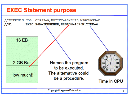 z/OS Job Control Language as a Resource ManagerThe primary purpose of the EXEC Statement is to inform the system as to which program or procedure is to be executed.