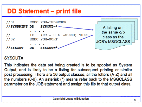 Whilst there are other operands that can be associated with print data sets, it is the SYSOUT= operand which controls resource allocation, and allows the output to be captured